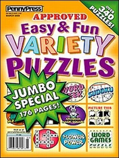 Approved Easy & Fun Variety Puzzles, a true variety magazine, hits on all of the popular puzzles including Word Search, Sudoku, and Picture This, as well as dozens more that you might just encounter here for the first time. What’s different about this magazine is that its puzzles are less challenging and more leisure-oriented than those found in PennyPress’ other selections.