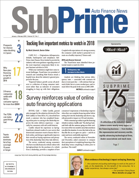 The leading magazine of the used car lender. Circulating the US and Canada, SubPrime is read by professionals throughout the auto finance, subprime lending and auto remarketing industries.